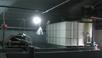 此次現(xiàn)場(chǎng)驗(yàn)收的循環(huán)水養(yǎng)殖系統(tǒng),是課題組于2009年下半年將原有開(kāi)放式流水養(yǎng)殖系統(tǒng)改建而成,由四套單體有效苗種培育面積為300m2的循環(huán)水系統(tǒng)組成,總有效苗種培育面積達(dá)到1200m2。該系統(tǒng)主要由養(yǎng)殖水槽、微濾機(jī)、滴流式生物過(guò)濾器、泡沫分離器、臭氧發(fā)生和添加裝置、水質(zhì)在線檢測(cè)設(shè)備等單元組成,實(shí)現(xiàn)了反沖洗、補(bǔ)水、水泵保護(hù)、水質(zhì)和臭氧添加量檢測(cè)等過(guò)程的自動(dòng)控制,設(shè)施設(shè)備配套齊全。用該系統(tǒng)進(jìn)行大菱鲆苗種中間培育30天,運(yùn)行良好,日換水量只有50%,各項(xiàng)水質(zhì)指標(biāo)均達(dá)到設(shè)計(jì)要求;該系統(tǒng)內(nèi)所養(yǎng)的大菱鲆苗種平均全長(zhǎng)6.1cm(平均體重3.7g),數(shù)量總計(jì)38 萬(wàn)尾,養(yǎng)殖密度高達(dá)4.9kg/m2,各單個(gè)系統(tǒng)的苗種培育成活率均達(dá)到96%以上。