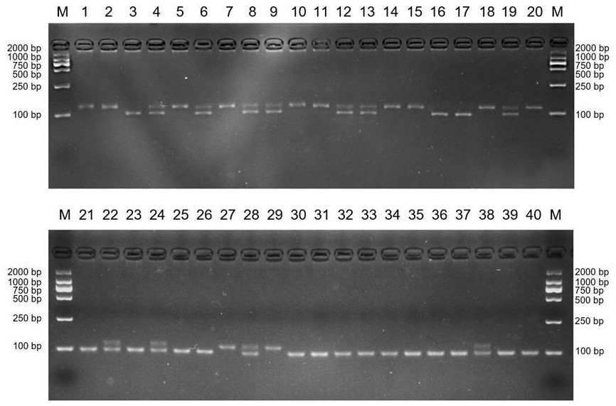 本發(fā)明涉及鑒定三疣梭子蟹氨氮耐受性狀的InDel標(biāo)記C3082、引物及其應(yīng)用,屬于DNA分子標(biāo)記技術(shù)領(lǐng)域。所述分子標(biāo)記C3082是一種InDel標(biāo)記,缺失純合為氨氮耐受基因型。本發(fā)明還利用所述分子標(biāo)記C3082設(shè)計(jì)得到了一對(duì)有效的核苷酸序列的擴(kuò)增引物。所述分子標(biāo)記C3082和其擴(kuò)增引物能夠從分子水平對(duì)耐氨氮的三疣梭子蟹個(gè)體進(jìn)行鑒定和篩選,方法簡單,準(zhǔn)確可靠,有效加快耐氨氮三疣梭子蟹新品種的選育進(jìn)程。