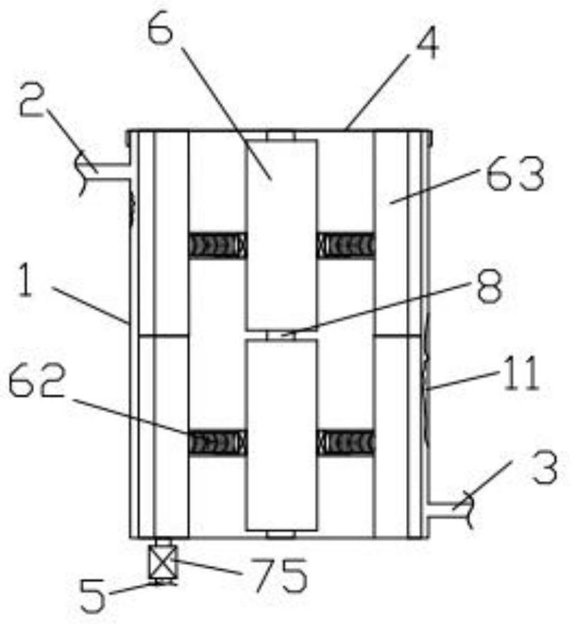 本發(fā)明屬于船舶熱水供應(yīng)領(lǐng)域,更具體的涉及一種船舶用漸進(jìn)式水垢自清潔熱水箱,包括箱體和設(shè)置在箱體上的進(jìn)水口和出水口,還包括設(shè)置于所述箱體內(nèi)的用于刮除箱體內(nèi)部表面的水垢刮除器,用于為水垢刮除器提供動(dòng)力的驅(qū)動(dòng)裝置。所述水垢刮除器包括與驅(qū)動(dòng)裝置連接用于提供動(dòng)力的轉(zhuǎn)動(dòng)桿,所述轉(zhuǎn)動(dòng)桿的一端連接有可以伸縮的伸縮機(jī)構(gòu),所述伸縮機(jī)構(gòu)的另一端連接有用于刮除水垢的刮板;還包括一設(shè)置于刮板上用于感受水垢阻力的阻力感應(yīng)器,一用于感應(yīng)刮板前端與箱體內(nèi)壁距離的距離感應(yīng)器,以及用于控制水垢刮除器和驅(qū)動(dòng)機(jī)構(gòu)的控制器。本發(fā)明能夠在快速刮除水垢的同時(shí),保證箱體內(nèi)壁不受損傷,并能對(duì)電機(jī)進(jìn)行保護(hù)。