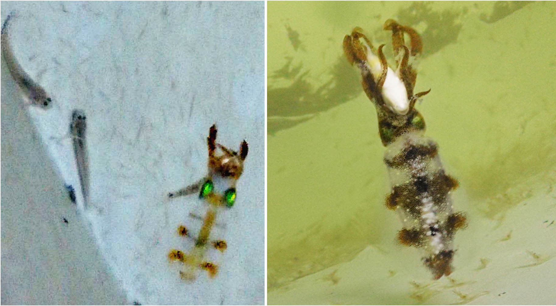 本發(fā)明針對(duì)萊氏擬烏賊不攝食底部餌料的特性,在苗種培育前期,通過降低水位,縮小烏賊和池底的距離,以及投喂配合飼料增加糠蝦和魚苗攝食餌料時(shí)的活動(dòng)頻率,成功馴化烏賊攝食底部活餌;針對(duì)萊氏擬烏賊攝食冰鮮餌料后隨即吐出的特性,本發(fā)明采用冷麻醉的方法將活餌麻醉,烏賊攝食后,餌料在口中掙扎,讓烏賊感受到攝食的是活餌而不吐出,同時(shí)麻醉復(fù)蘇后的活餌還可在池底存活,然后被烏賊攝食,進(jìn)而馴化解決了烏賊不攝食冰鮮餌料的難題;同時(shí)在投喂餌料時(shí),萊氏擬烏賊積極爭(zhēng)搶下沉階段的餌料,針對(duì)這一特性,本發(fā)明通過升高水位的方式,增大餌料下沉距離,延長(zhǎng)餌料下沉?xí)r間,顯著增加了烏賊的攝食頻率,從而解決了萊氏擬烏賊餌料馴化投喂難題。