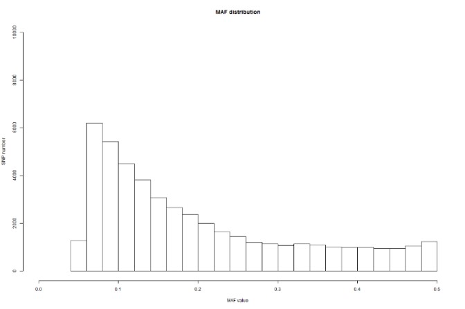 “魚芯1號”基因芯片SNP位點最小等位基因頻率分布圖