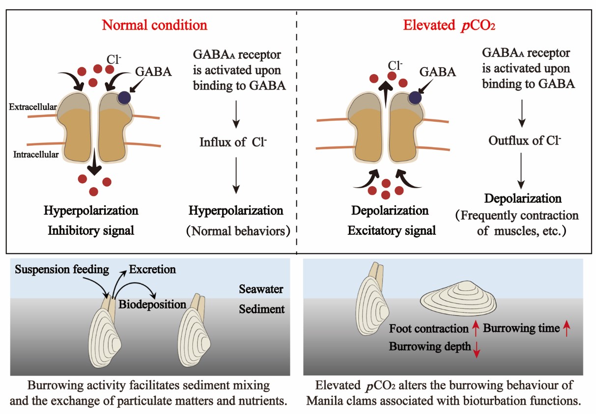 海洋酸化脅迫通過逆轉(zhuǎn)GABAA受體功能影響菲律賓蛤仔的潛沙行為