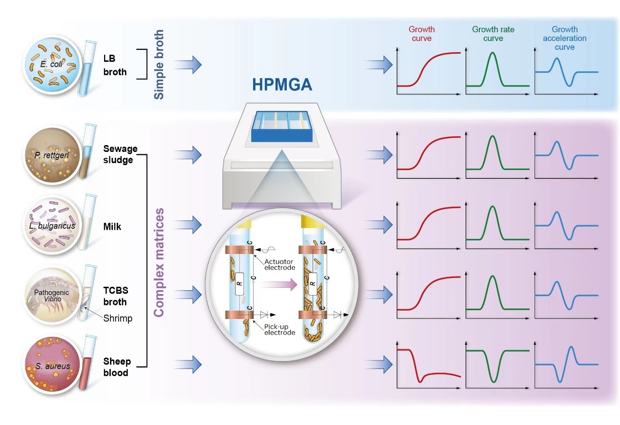 本工作攻克了困擾分析科研界近半個世紀(jì)的難題,研制的HPMGA是微生物生長分析技術(shù)的革命性突破,在國際上首次為高效且精確測定復(fù)雜基質(zhì)中微生物生長曲線提供了可靠工具。更重要的是,它是世界上第一款能夠自動報告生長速率、生長加速度曲線及曲線上的動力學(xué)參數(shù)的自主知識產(chǎn)權(quán)分析儀器,為產(chǎn)生具有顛覆性意義的科學(xué)發(fā)現(xiàn)奠定了儀器和方法基礎(chǔ)。本研究獲得了山東省重點研發(fā)計劃項目(2020CXGC010703)和山東省自然科學(xué)基金重點項目(ZR2020KB021)的支持。