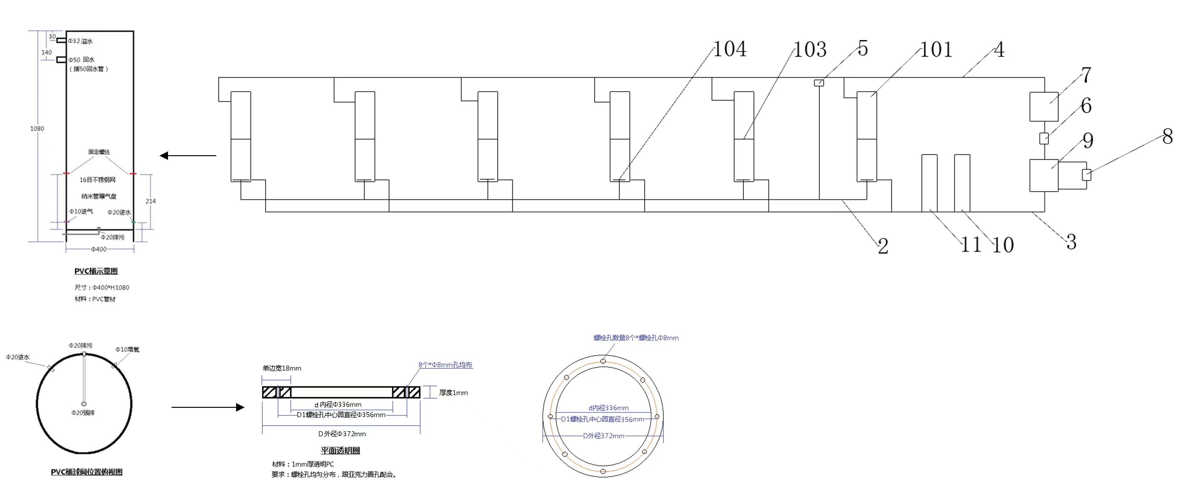 該發(fā)明提供了一種基于上升流的海草種子規(guī)?;L期保存系統(tǒng)。通過構(gòu)建飽和氧體系,抑制種子萌發(fā),外加循環(huán)過濾和低溫系統(tǒng),實(shí)現(xiàn)種子的規(guī)?;洼p簡(jiǎn)化保存,可滿足修復(fù)工程中對(duì)種子保存的需求。系統(tǒng)包括若干個(gè)種子懸浮裝置、進(jìn)氣管路、進(jìn)水管路和回水管路,其中種子懸浮裝置包括有機(jī)玻璃桶、氣盤支架和分離網(wǎng)等,可有效保存種子,極大避免了傳統(tǒng)消毒操作對(duì)種子萌發(fā)產(chǎn)生的不良影響。該發(fā)明操作簡(jiǎn)便,特別適合于鰻草種子規(guī)?;4?。