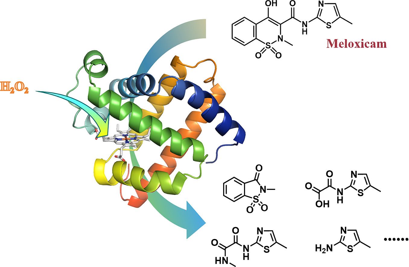 肌紅蛋白生物降解美洛昔康示意圖
