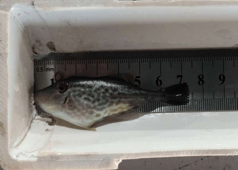 驗收專家組聽取了項目組工作匯報,查看了苗種培育現(xiàn)場,核查了相關(guān)生產(chǎn)記錄資料,經(jīng)質(zhì)詢、答疑后認為,項目組保有綠鰭馬面鲀親魚1311尾,培育幼魚苗種61.3萬尾,稚魚苗種67.5萬尾;幼魚苗種全長范圍5.0cm~7.1cm、平均全長6.1±0.6cm,體重范圍1.93g~4.26g、平均體重3.09±0.64g;苗種體形體色正常,健壯活力強,無疾病征象,一致同意通過現(xiàn)場驗收。