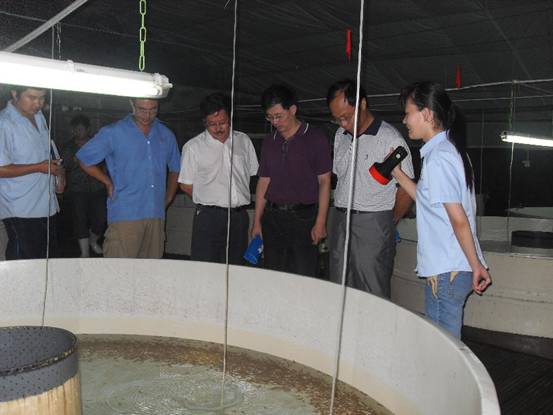 張國(guó)良處長(zhǎng)一行視察了明波水產(chǎn)全循環(huán)水半滑舌鰨養(yǎng)殖車間、石斑魚繁育車間,重點(diǎn)考察了萊州試驗(yàn)站在循環(huán)水的設(shè)施運(yùn)轉(zhuǎn)、節(jié)能降耗、應(yīng)用推廣等方面的工作情況,對(duì)循環(huán)水養(yǎng)殖車間的良好運(yùn)轉(zhuǎn)表示贊賞,并對(duì)萊州試驗(yàn)站的工作給予了高度評(píng)價(jià)。張國(guó)良處長(zhǎng)指出開展循環(huán)水養(yǎng)殖是鲆鰈類產(chǎn)業(yè)轉(zhuǎn)型升級(jí)、走工業(yè)化道路的重要組成部分,并鼓勵(lì)明波公司在向科技型企業(yè)轉(zhuǎn)變過(guò)程中,加大科技的投入力度,通過(guò)示范帶動(dòng)作用,將新的節(jié)能、低耗、環(huán)保的養(yǎng)殖模式推廣應(yīng)用,服務(wù)于產(chǎn)區(qū),提高產(chǎn)業(yè)整體養(yǎng)殖水平。