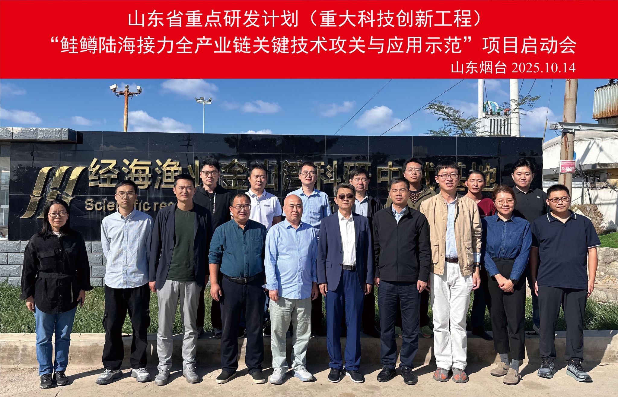 10月14日,山東省重點(diǎn)研發(fā)計(jì)劃(重大科技創(chuàng)新工程)“鮭鱒陸海接力全產(chǎn)業(yè)鏈關(guān)鍵技術(shù)攻關(guān)與應(yīng)用示范”項(xiàng)目啟動(dòng)會(huì)在煙臺(tái)經(jīng)海海洋漁業(yè)有限公司金山灣科研中試基地召開(kāi)。煙臺(tái)大學(xué)杜榮斌教授、山東生態(tài)環(huán)境學(xué)院(籌)曹學(xué)彬正高級(jí)工程師和山東省海洋資源與環(huán)境研究院韓慧宗副主任作為項(xiàng)目咨詢(xún)專(zhuān)家組專(zhuān)家應(yīng)邀參會(huì)。項(xiàng)目技術(shù)負(fù)責(zé)人中國(guó)水產(chǎn)科學(xué)研究院黃海水產(chǎn)研究所李杰副研究員、項(xiàng)目行政負(fù)責(zé)人煙臺(tái)經(jīng)海海洋漁業(yè)有限公司總經(jīng)理郭福元和項(xiàng)目組成員等10余人參加。會(huì)議由黃海所副所長(zhǎng)邵長(zhǎng)偉研究員和項(xiàng)目承擔(dān)單位煙臺(tái)經(jīng)海海洋漁業(yè)有限公司科研部經(jīng)理張黎黎主持。