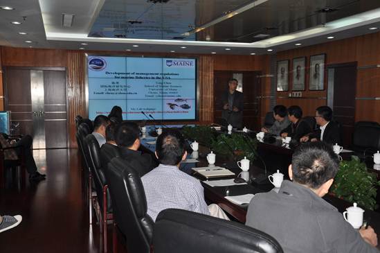 會(huì)上,金顯仕所長(zhǎng)簡(jiǎn)要介紹了黃海所的發(fā)展歷史與現(xiàn)狀,提出了與上海海洋大學(xué)專(zhuān)家開(kāi)展深入合作交流的建議,得到了來(lái)訪領(lǐng)導(dǎo)與專(zhuān)家組的積極響應(yīng)。陳勇教授做了題為“Development of management regulations for marine fisheries in the USA”的學(xué)術(shù)報(bào)告,綜述了美國(guó)在海洋漁業(yè)管理科學(xué)決策方面的前沿成果與發(fā)展方向。上海海洋大學(xué)的來(lái)訪專(zhuān)家與黃海所資源室的科研人員分別做了涉及遠(yuǎn)洋、近海漁業(yè)評(píng)估與管理方面的8個(gè)學(xué)術(shù)報(bào)告,并就雙方感興趣的議題開(kāi)展了深入的交流與討論。本次交流活動(dòng)加深了雙方的相互了解,為下一步雙方在海洋漁業(yè)領(lǐng)域開(kāi)展合作奠定了良好的基礎(chǔ)。