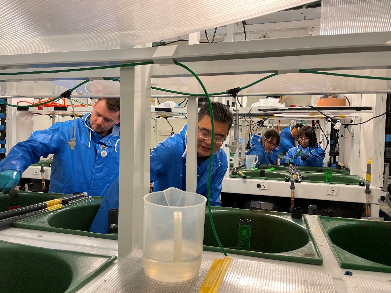 此次訪問主要針對項目總體工作進展、項目年會組織籌備、在途實驗聯(lián)合實施、后續(xù)工作計劃等方面展開交流與討論。具體涵蓋:交流生態(tài)養(yǎng)殖模式構建、水產養(yǎng)殖碳匯功能、氣候變化與水產養(yǎng)殖相互作用等主題工作進展;討論、確定項目年會會議形式、會議日程、專題設置、會議規(guī)模等相關事宜;參與挪方科研人員在途進行的海洋酸化和典型污染物脅迫下北極蛤和沙蠶生理生態(tài)響應現(xiàn)場實驗;考察大西洋鮭養(yǎng)殖場,并交流MOM系統(tǒng)(Modelling-Ongrowing fishfarms-Monitoring,魚類網(wǎng)箱養(yǎng)殖環(huán)境健康狀況監(jiān)測系統(tǒng))在挪威魚類網(wǎng)箱養(yǎng)殖環(huán)境評價和管理方面的應用進展;商定挪方MOM系統(tǒng)研發(fā)人員赴中國開展現(xiàn)場考察事宜等。