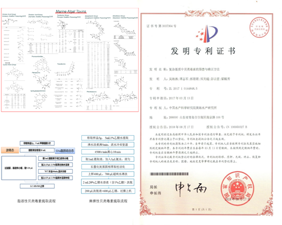 幾十年來,貝類毒素危害對(duì)我國國民健康、國際貿(mào)易和產(chǎn)業(yè)發(fā)展造成極為嚴(yán)峻的不利影響。貝類毒素種類多且具區(qū)域、品種和季節(jié)差異特征,因此高通量篩查及確證技術(shù)是摸清我國近海貝類中毒素殘留風(fēng)險(xiǎn)、科學(xué)構(gòu)建防控技術(shù)的首要任務(wù),也是國際貝類毒素研究的技術(shù)難點(diǎn)之一。黃海水產(chǎn)研究所水產(chǎn)品質(zhì)量安全形成機(jī)理與過程控制團(tuán)隊(duì)率先突破了復(fù)雜貝類基質(zhì)前處理技術(shù)局限性,有效解決了基質(zhì)干擾效應(yīng),將超痕量毒素的提取效率由不足50%提升到85%以上;自建貝類毒素非定向篩查信息采集方法,實(shí)現(xiàn)了貝類中游離態(tài)和結(jié)合態(tài)貝類毒素組分的高精準(zhǔn)解析。綜合運(yùn)用多級(jí)質(zhì)譜高靈敏檢測(cè)與鑒定方法,建立數(shù)據(jù)依賴性采集模式,將貝類毒素?cái)?shù)據(jù)庫、精確分子質(zhì)量、多能量全掃描二級(jí)譜庫等信息納入判定依據(jù),通過匹配權(quán)重綜合識(shí)別判定,實(shí)現(xiàn)多毒素組分標(biāo)準(zhǔn)化的精確確證。已建立的120多種貝類毒素組分的質(zhì)譜譜庫,是我國目前覆蓋范圍最廣、技術(shù)能力最強(qiáng)的貝類毒素高通量篩查與確證方法平臺(tái),顯著提升了我國貝類毒素風(fēng)險(xiǎn)的主動(dòng)防控能力。