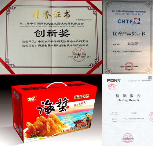 針對(duì)海蜇制品中鋁殘留量嚴(yán)重超標(biāo)的問題,黃海水產(chǎn)研究所水產(chǎn)動(dòng)物精深加工與綜合利用團(tuán)隊(duì)建立了一套完整的海蜇制品中鋁的控制技術(shù)和加工工藝。該技術(shù)具有綠色安全、處理成本低、操作簡(jiǎn)便、產(chǎn)品品質(zhì)高等特點(diǎn)。采用該技術(shù)加工的即食海蜇,經(jīng)第三方權(quán)威機(jī)構(gòu)檢測(cè),產(chǎn)品中鋁含量均在75 mg/kg以下,大幅低于GB 2760-2014中500 mg/kg的限量值,極大提高了海蜇產(chǎn)品的質(zhì)量安全。該技術(shù)不僅可以有效控制海蜇產(chǎn)品中的鋁含量,同時(shí)解決了脫鋁過程會(huì)嚴(yán)重破壞產(chǎn)品品質(zhì)的問題,采用該技術(shù)加工的即食海蜇口感脆嫩、有韌性,口感好。與同類技術(shù)相比,該技術(shù)具有明顯的先進(jìn)性與創(chuàng)新性。該項(xiàng)技術(shù)得到了業(yè)界的廣泛認(rèn)可,2項(xiàng)相關(guān)專利已經(jīng)在企業(yè)進(jìn)行了專利獨(dú)家許可使用和專利權(quán)轉(zhuǎn)讓,并成功在企業(yè)中得到應(yīng)用,起到了很好的示范推廣作用。2018年獲第二屆中國國際現(xiàn)代漁業(yè)暨漁業(yè)科技博覽會(huì)“創(chuàng)新獎(jiǎng)”。