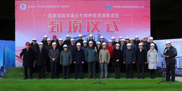 推進(jìn)會后,在建設(shè)現(xiàn)場隆重舉行了國家級海洋漁業(yè)生物種質(zhì)資源庫封頂儀式。黃海水產(chǎn)研究所所長金顯仕、中青建安建設(shè)集團(tuán)有限公司董事長楊建強(qiáng)分別致辭,農(nóng)業(yè)農(nóng)村部漁業(yè)漁政管理局局長張顯良宣布國家級海洋漁業(yè)生物種質(zhì)資源庫封頂。
