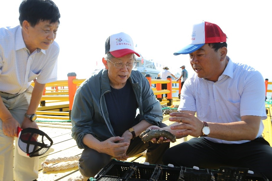 唐啟升(中)考察山東省榮成市東楮島海洋牧場與休閑漁業(yè)。