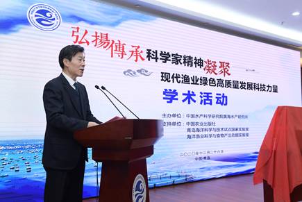 農(nóng)業(yè)農(nóng)村部漁業(yè)漁政管理局局長(zhǎng)張顯良、中國工程院二局局長(zhǎng)兼戰(zhàn)略咨詢中心主任徐進(jìn)、中國水產(chǎn)科學(xué)研究院院長(zhǎng)王小虎、中國水產(chǎn)學(xué)會(huì)理事長(zhǎng)王清印、中國農(nóng)業(yè)出版社總編輯胡樂鳴、青島海洋科學(xué)與技術(shù)試點(diǎn)國家實(shí)驗(yàn)室常務(wù)副主任王栽毅等出席會(huì)議。黃海水產(chǎn)研究所領(lǐng)導(dǎo)班子全體成員、所職工、博士后和研究生等400余人以線上和線下相結(jié)合的方式參加了學(xué)術(shù)活動(dòng),近4萬人觀看了在線直播。黃海水產(chǎn)研究所黨委書記趙憲勇主持活動(dòng)。