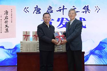 首發(fā)式上,張顯良局長(zhǎng)、徐進(jìn)局長(zhǎng)、王小虎院長(zhǎng)、胡樂鳴總編、王栽毅常務(wù)副主任和唐啟升院士共同為《唐啟升文集》首發(fā)揭幕,唐啟升院士現(xiàn)場(chǎng)向張顯良局長(zhǎng)、王小虎院長(zhǎng)等贈(zèng)送了《唐啟升文集》和《我的科學(xué)年表》。