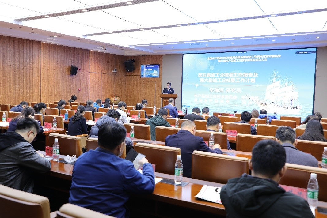 11月26日,全國水產(chǎn)標準化技術委員會水產(chǎn)品加工分技術委員會(SAC/TC156/SC3)暨全國食品工業(yè)標準化技術委員會水產(chǎn)品加工分技術委員會(SAC/TC64/SC1)(以下簡稱“加工分技委”)在青島召開第六屆成立大會,會議采用線上線下相結(jié)合的形式召開。農(nóng)業(yè)農(nóng)村部農(nóng)產(chǎn)品質(zhì)量安全監(jiān)管司、漁業(yè)漁政管理局,中國水產(chǎn)科學研究院,全國水產(chǎn)標準化技術委員會,全國食品工業(yè)標準化技術委員會等部門領導以及第六屆加工分技委全體委員共60人參加會議。會議由加工分技委副主任委員、中國海洋大學林洪教授主持。