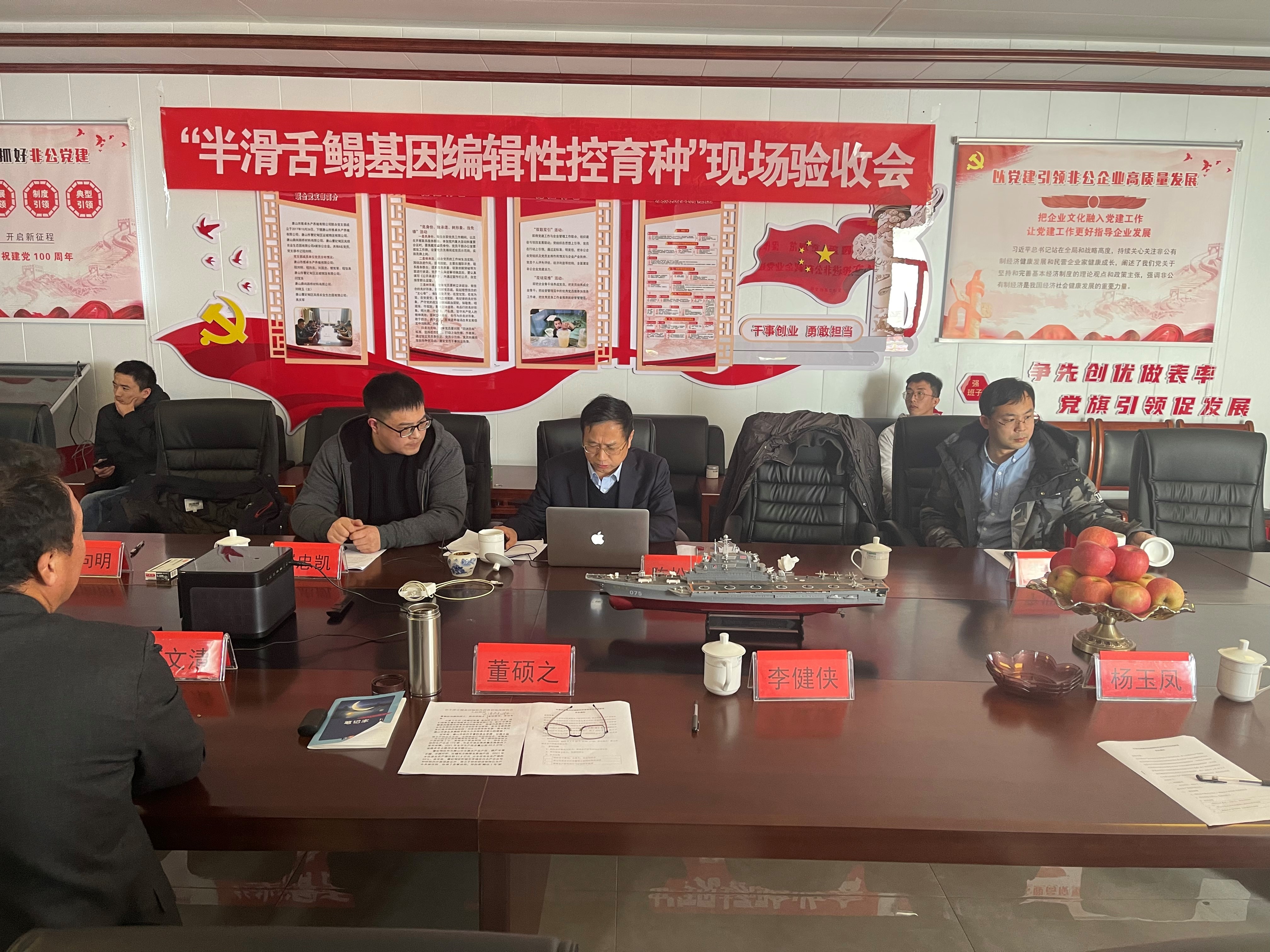 1月26日,由包振民院士、劉英杰研究員、王志勇教授、張繼泉教授和蘇文清研究員等組成的專家組在唐山市通過線上線下相結(jié)合的方式,對中國水產(chǎn)科學研究院黃海水產(chǎn)研究所陳松林院士團隊主持承擔、唐山市維卓水產(chǎn)養(yǎng)殖有限公司參加的國家自然科學基金重點項目“半滑舌鰨雌性性別決定的分子機制及基因組編輯性控育種的基礎研究”、海水魚產(chǎn)業(yè)技術體系“半滑舌鰨遺傳改良崗位”項目和中國水產(chǎn)科學研究院基本科研業(yè)務費重點項目“半滑舌鰨和鯉基因編輯育種”等項目研制的半滑舌鰨基因編輯F3代快速生長雄魚進行了現(xiàn)場驗收。河北省農(nóng)業(yè)農(nóng)村廳漁業(yè)處周永剛二級調(diào)研員、唐山市農(nóng)牧局副局長董碩之、曹妃甸區(qū)政府黨組副書記李健俠、曹妃甸區(qū)農(nóng)牧局局長楊玉鳳和工信局副局長袁衛(wèi)國等地方領導出席驗收會,黃海水產(chǎn)研究所副所長葉乃好等參加會議。