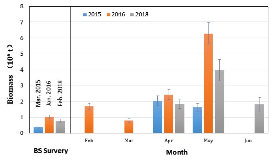 漁業(yè)熱區(qū)南極磷蝦生物量季節(jié)變化