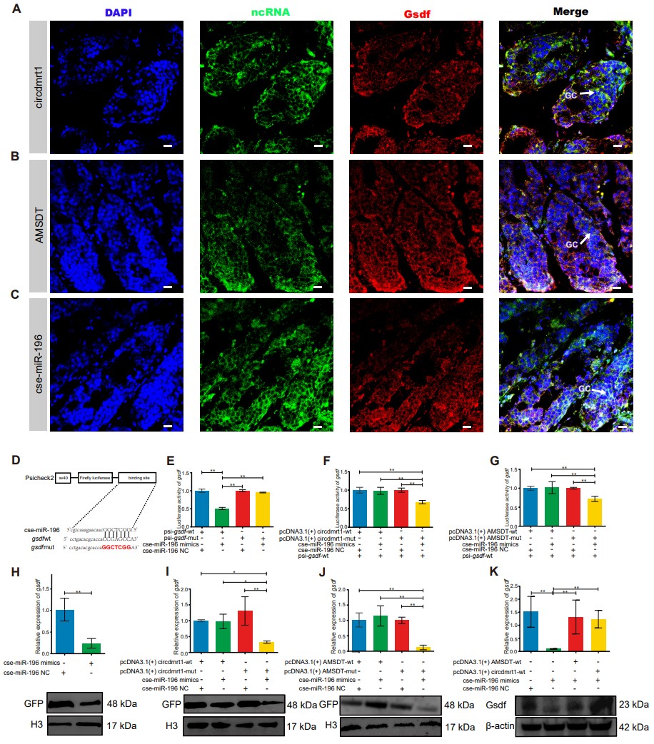 circdmrt1、AMSDT與cse-miR-196互作調(diào)控gsdf的ceRNA關(guān)系