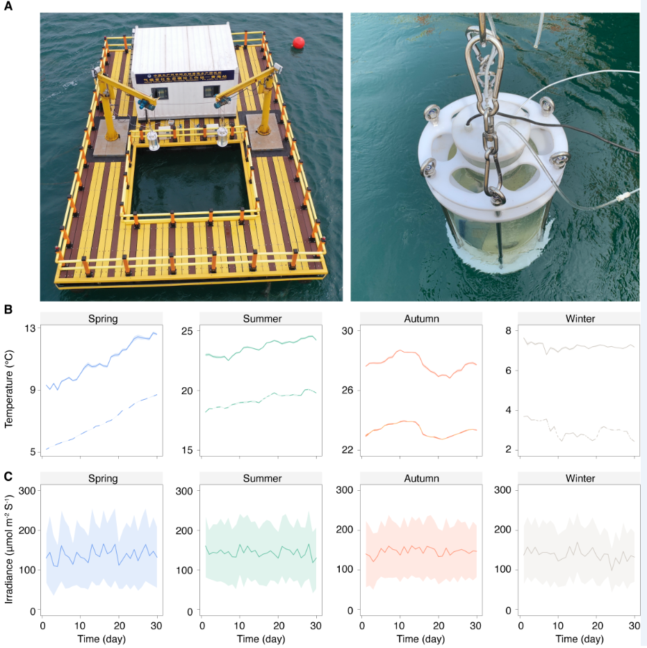 圖1. 多列擬菱形藻海洋原位氣候變化生態(tài)模擬實(shí)驗(yàn)設(shè)計(jì)