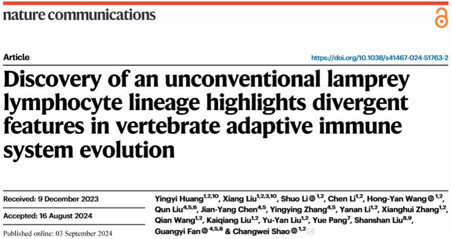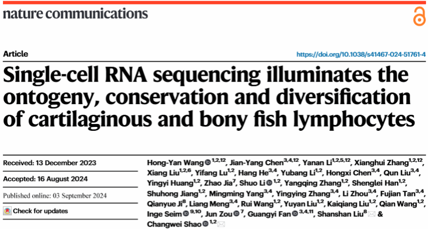 9月3日,中國水產(chǎn)科學(xué)研究院黃海水產(chǎn)研究所邵長偉研究員團(tuán)隊(duì)發(fā)布了“數(shù)字種源”計(jì)劃關(guān)于水產(chǎn)種質(zhì)資源多樣性與重要性狀演化機(jī)制方面的首期成果。該成果以兩篇研究長文形式在國際著名期刊《自然·通訊》(Nature Communications)背靠背發(fā)表,深入探討了脊椎動(dòng)物淋巴細(xì)胞譜系的演化特征。兩篇文章題目分別為:“Discovery of an unconventional lamprey lymphocyte lineage highlights divergent features in vertebrate adaptive immune system evolution”和“Single-cell RNA sequencing illuminates the ontogeny, conservation and diversification of cartilaginous and bony fish lymphocytes”。這兩項(xiàng)研究分別解析了無頜類與有頜類脊椎動(dòng)物,以及軟骨魚與硬骨魚之間,淋巴細(xì)胞譜系的保守性以及差異的進(jìn)化特征,為理解適應(yīng)性免疫系統(tǒng)進(jìn)化提供了新的視角。