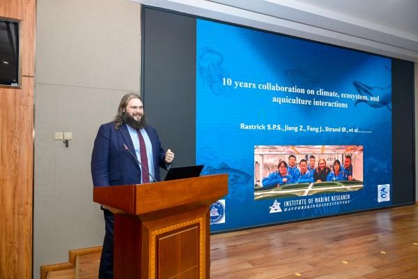 黃海所金顯仕研究員、方建光研究員、趙憲勇研究員分別作題為《“北斗”項目40周年回顧》《中挪生態(tài)養(yǎng)殖合作研究發(fā)展歷程的回顧與展望》《中挪協(xié)力推進以科學(xué)研究為基礎(chǔ)的生態(tài)系統(tǒng)水平上的南極磷蝦漁業(yè)管理》的主旨報告;挪威海洋研究所歐文·斯特蘭德博士、拉爾斯·阿斯普林博士、塞繆爾·拉斯特里克博士分別做題為《“北斗”號成果—構(gòu)建研究合作平臺》《“北斗”號EAG項目—邁向生態(tài)系統(tǒng)和水產(chǎn)養(yǎng)殖研究》《氣候、生態(tài)系統(tǒng)與水產(chǎn)養(yǎng)殖交互作用的十年合作》的主旨報告,回顧了雙方在漁業(yè)資源評估和管理、生態(tài)養(yǎng)殖等領(lǐng)域的合作成果。
