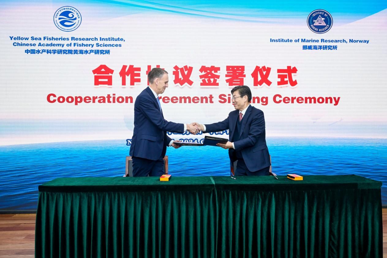 趙憲勇書記與彼得·莫斯比·霍根所長分別代表黃海所與挪威海洋研究所簽署了科技合作協(xié)議,為進一步深化拓展雙方未來在漁業(yè)和水產(chǎn)養(yǎng)殖領(lǐng)域的務(wù)實合作奠定了基礎(chǔ)。