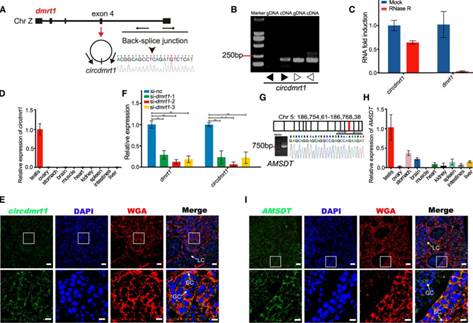 Characteristics of circdmrt1 and AMSDT in tongue sole testis