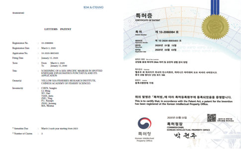 中國(guó)水產(chǎn)科學(xué)研究院黃海水產(chǎn)研究所陳松林研究團(tuán)隊(duì)發(fā)明的“斑石鯛雄性特異DNA標(biāo)記及遺傳性別鑒定方法”獲國(guó)際發(fā)明專利授權(quán),專利號(hào)為10-2086984,為黃海水產(chǎn)研究所首個(gè)獲國(guó)際授權(quán)的專利。