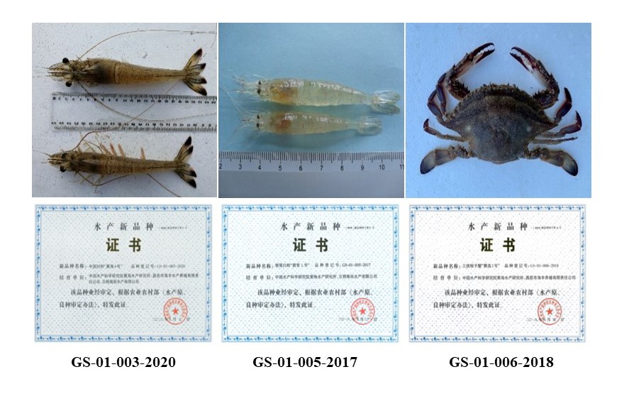 培育3個環(huán)境適應能力強的國審水產(chǎn)新品種,為蝦蟹養(yǎng)殖綠色發(fā)展提供保障。創(chuàng)建了適用于蝦蟹生態(tài)適應性狀的基因組選擇育種技術,結合傳統(tǒng)群體、家系、配套系和近交系等選育方法,培育出耐高pH脅迫能力強的中國對蝦“黃海4號”(GS-01-003-2020,耐高pH脅迫能力提高16.3%-32.2%)、生長速度快的脊尾白蝦“黃育1號”(GS-01-005-2017,生長速度提高18.4%)和耐低鹽能力強的三疣梭子蟹“黃選2號”(GS-01-006-2018,耐低鹽能力提高13.1%)3個國審新品種,還建立了耐鹽堿能力強的脊尾白蝦和耐低溫能力強的日本對蝦新品系各1個。其中,中國對蝦“黃海4號”和脊尾白蝦“黃育1號”新品種分別獲第二十二屆和第二十一屆中國國際高新技術成果交易會“優(yōu)秀產(chǎn)品獎”。2016年以來,累計培育中國對蝦良種親蝦6.5萬尾、優(yōu)質(zhì)仔蝦苗種48.9億尾;三疣梭子蟹良種親蟹1.39萬只、優(yōu)質(zhì)苗種1.93億只;脊尾白蝦良種親蝦17.48萬尾;日本對蝦耐低溫新品系親蝦5178尾、苗種1.5億尾。新品種在山東、河北、遼寧、江蘇、浙江等主產(chǎn)區(qū)示范推廣養(yǎng)殖50多萬畝,示范區(qū)內(nèi)蝦蟹良種覆蓋率達80%以上。“蝦蟹多營養(yǎng)層次綠色養(yǎng)殖關鍵技術與示范”成果獲2019年山東省科技進步一等獎。