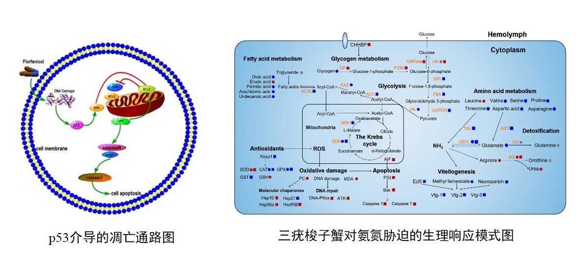 解析蝦蟹對環(huán)境脅迫因子的生態(tài)適應機制,為蝦蟹抗逆品種的培育提供科學依據(jù)。查明氨氮、鹽度、堿度和溫度等環(huán)境因子脅迫能顯著降低蝦蟹非特異性免疫和抗氧化系統(tǒng)功能,造成鰓和肝胰腺組織損傷,機體可通過p53介導的線粒體通路引發(fā)細胞凋亡,以適應環(huán)境變化;三疣梭子蟹通過激活鳥氨酸-尿素等途徑進行信號傳導響應氨氮脅迫,谷氨酸脫氫酶去氨化和谷氨酰胺合成是解毒重要途徑;發(fā)現(xiàn)HSP10和HSP40等分子伴侶在脊尾白蝦高溫耐受中發(fā)揮重要作用;脊尾白蝦可耐受10 mmol/L的中等程度碳酸鹽堿度脅迫,揭示其鰓片間細胞數(shù)目顯著增多,并趨向于分化為離子細胞的適應機制。研究結果為蝦蟹抗逆良種選育提供理論支持。
