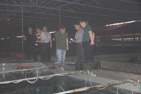 驗收專家組聽取了史寶副研究員代表課題組做的星康吉鰻工廠化循環(huán)水規(guī)?;B(yǎng)殖技術(shù)研究工作與技術(shù)匯報,在線觀看了循環(huán)水養(yǎng)殖系統(tǒng)的水下影像資料,查閱了養(yǎng)殖管理記錄,現(xiàn)場察看了星康吉鰻工廠化循環(huán)水規(guī)?;B(yǎng)殖的情況,隨機抽查、測定星康吉鰻存養(yǎng)量。專家組認為,課題組建立了循環(huán)水系統(tǒng)水質(zhì)微生物調(diào)控技術(shù)和循環(huán)水聚容養(yǎng)殖技術(shù)等適應(yīng)星康吉鰻養(yǎng)殖的七項新技術(shù),并采用三套循環(huán)水系統(tǒng)進行了循環(huán)水星康吉鰻養(yǎng)殖模式研究,獲得星康吉鰻的總存養(yǎng)量為19589公斤。項目首席科學(xué)家黃海水產(chǎn)研究所曲克明研究員對該子任務(wù)完成情況進行了總結(jié)點評。