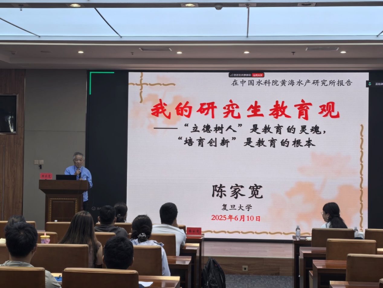 6月10日,中國(guó)水產(chǎn)科學(xué)研究院黃海水產(chǎn)研究所資源室支部和研究生支部聯(lián)合開展“立德樹人 培育創(chuàng)新”主題黨日活動(dòng),邀請(qǐng)著名生態(tài)學(xué)家和保護(hù)生物學(xué)家復(fù)旦大學(xué)陳家寬教授作《我的研究生教育觀——“立德樹人”是教育的靈魂,“培育創(chuàng)新”是教育的根本》專題報(bào)告,報(bào)告由資源室支部書記單秀娟同志主持,60余人參加。