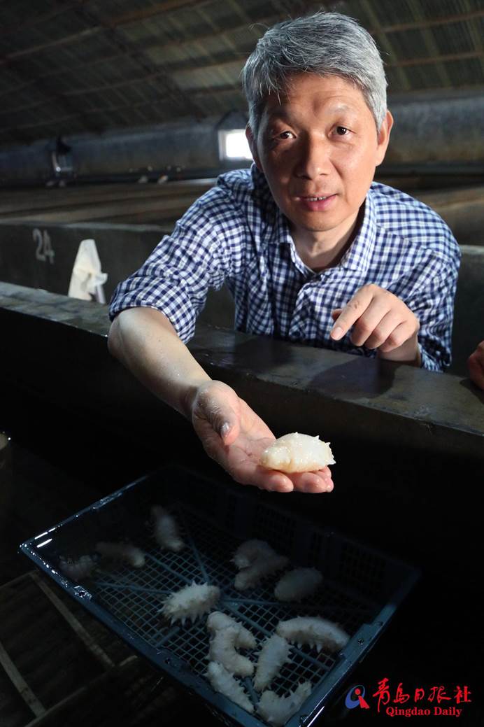 自從2015年陳四清率領(lǐng)團(tuán)隊(duì)從8億多頭白海參幼體中,繁殖成功了1000多萬(wàn)頭小苗,青島、煙臺(tái)、榮成等地的白海參養(yǎng)殖就漸漸形成了一定的規(guī)模。目前,青島的小苗都是從榮成運(yùn)過(guò)來(lái)的,小苗喝著海水,吃著營(yíng)養(yǎng)大餐,一天天長(zhǎng)大。