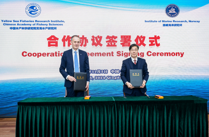 趙憲勇書記與彼得·霍根·莫斯比所長(zhǎng)分別代表黃海所與挪威海洋研究所簽署了科技合作協(xié)議,為進(jìn)一步深化拓展雙方未來在漁業(yè)和水產(chǎn)養(yǎng)殖領(lǐng)域的務(wù)實(shí)合作奠定了基礎(chǔ)。
