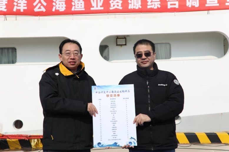 調(diào)查工作組向國(guó)家海洋漁業(yè)生物種質(zhì)資源庫(kù)研發(fā)中心移交海洋漁業(yè)生物樣品。