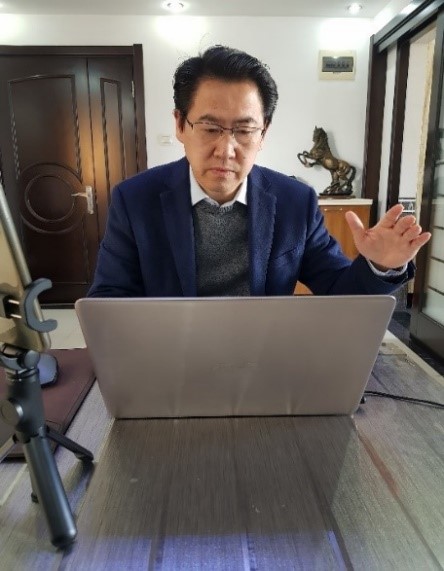 王印庚研究員在網(wǎng)絡(luò)平臺(tái)上主講對(duì)蝦疾病防控技術(shù)