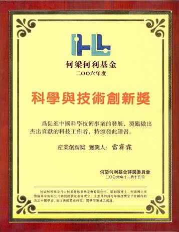 2006年,獲何梁何利基金科學(xué)與技術(shù)創(chuàng)新獎